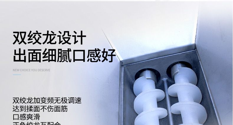 ◆ 出面機頭均采用國內(nèi)先進技術(shù)制造,使機頭真正達(dá)到存面少、不傷面筋、不斷面筋、不會有對半裂開口,并可以直接調(diào)節(jié)面皮的薄厚。