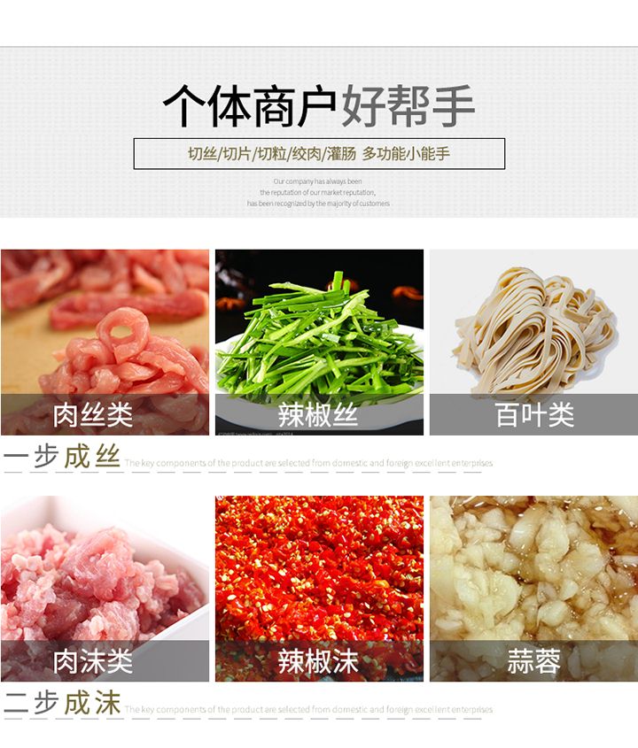 旭眾XZL一次成型切絲機是我廠精心研制出的新產(chǎn)品,該機時尚、簡潔、清洗便捷、操作安全,配有風冷馬達,適合連續(xù)作業(yè);高質(zhì)量全不銹鋼機身。適應(yīng)于酒樓、超市、工廠、學(xué)校、賓館、食堂等各種肉類加工企業(yè)和個體用戶使用。?
