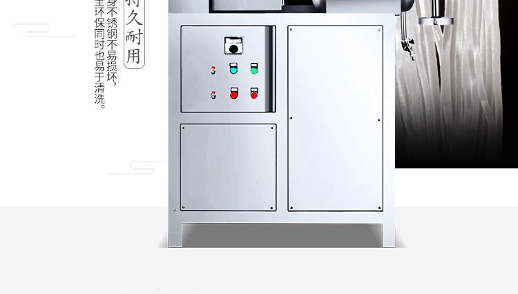 改進型米粉、米線專用機,裝有自動溫空裝置,整個生產(chǎn)過程設(shè)備均在恒溫狀態(tài)下運行,自動化程度高,操作簡單,l人即可生產(chǎn)??缮a(chǎn)米粉、米線、桂林米粉、過橋米線、年糕等產(chǎn)品。各種形狀都可生產(chǎn)(圓、扁),加工食品外表光滑,厚薄、寬窄、粗細均勻可調(diào),筋軟適度,有彈性,口感柔軟、味道純正。