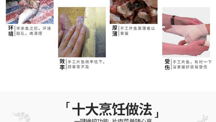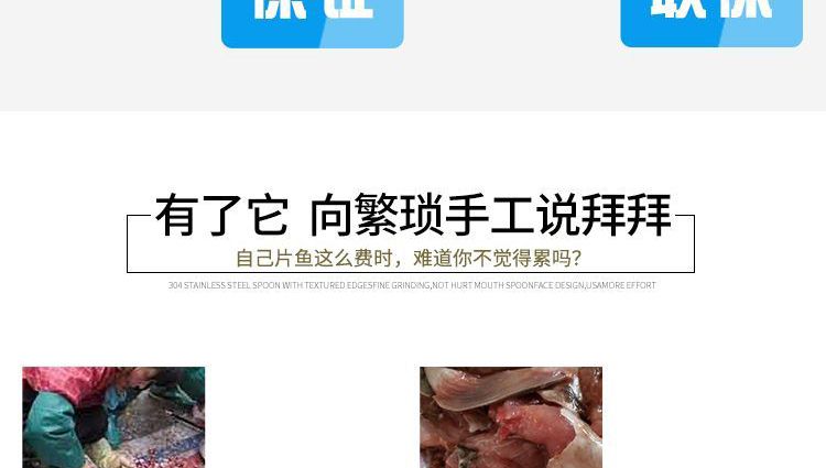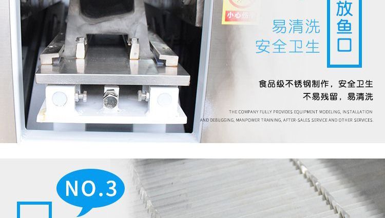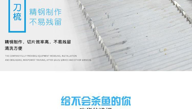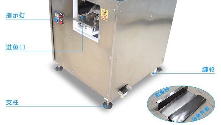 ?本機采用優(yōu)質(zhì)不銹鋼托魚板,衛(wèi)生干凈,刀片采用進口材料;