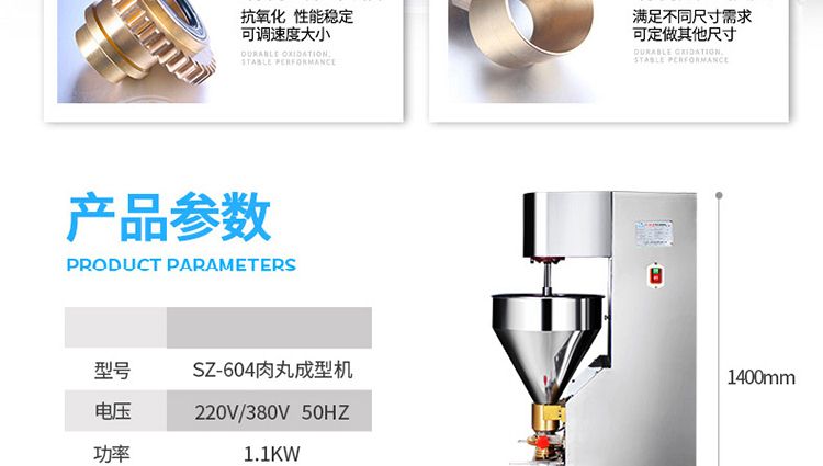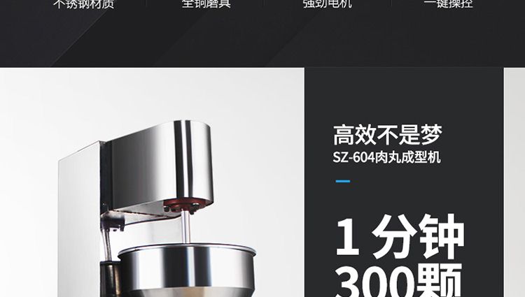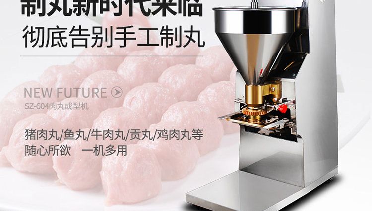 SZ-604肉丸成型機,肉丸成型機采用不銹鋼材質(zhì),丸子直徑可達15-35mm,可以制作各類爽脆,有韌性、有彈性的豬肉丸、魚丸、牛肉丸、貢丸、雞肉丸等