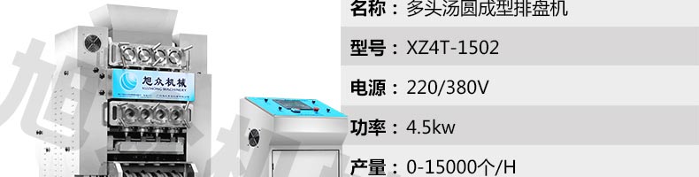 旭眾牌XZ4T-1501型多功能湯圓成型排盤機是一款只要將面團放入進(jìn)料口,開機便可自動搓圓、成型的設(shè)備,制品不易變形,工作效率高,相當(dāng)于15-20個工人同時手工制作湯圓,并可自動排盤,真正的低投入、高收效、省錢省工。