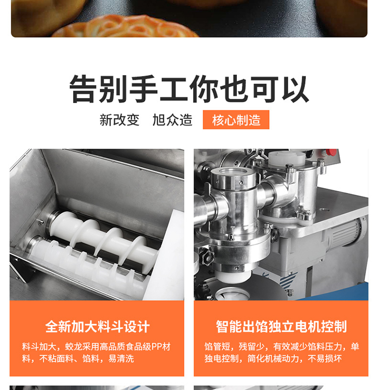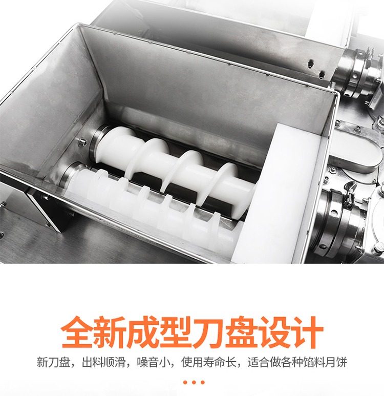 2.餡管更短,管內(nèi)存料少,減小出餡壓力,有效保護(hù)餡料顆粒,使餡料更松散、產(chǎn)品重量、皮餡比例更加穩(wěn)定,適用多種餡料;